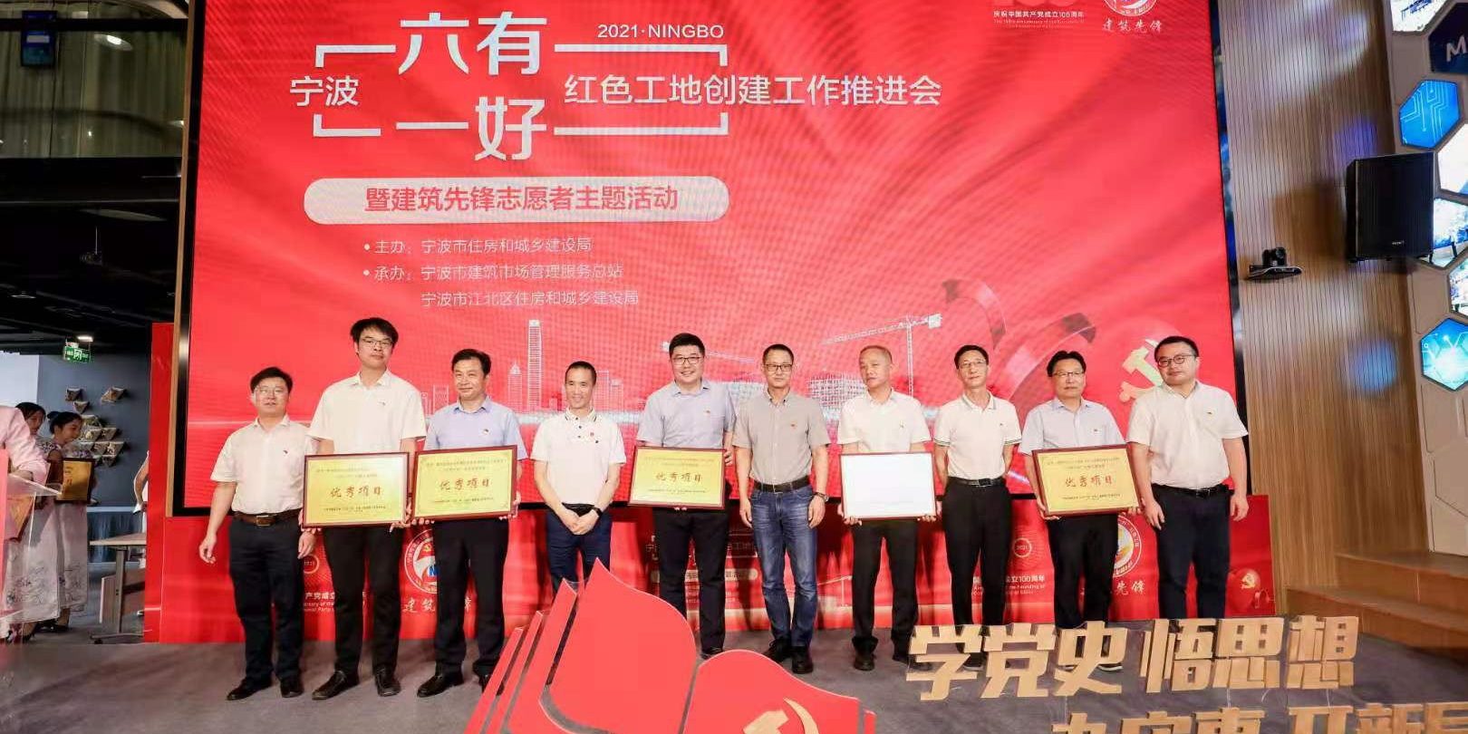 ? ? ? ?625日下午,寧波市建筑行業(yè)“六有一好”紅色工地創(chuàng)建工作推進(jìn)會(huì)暨“建筑先鋒”志愿者主題活動(dòng)在江北區(qū)文創(chuàng)港人才之家舉行。會(huì)上,我公司海曙區(qū)HS16-02-12地塊(寧波工業(yè)互聯(lián)網(wǎng)產(chǎn)業(yè)園)工程項(xiàng)目獲紅色工地創(chuàng)建優(yōu)秀項(xiàng)目榮譽(yù)表彰。