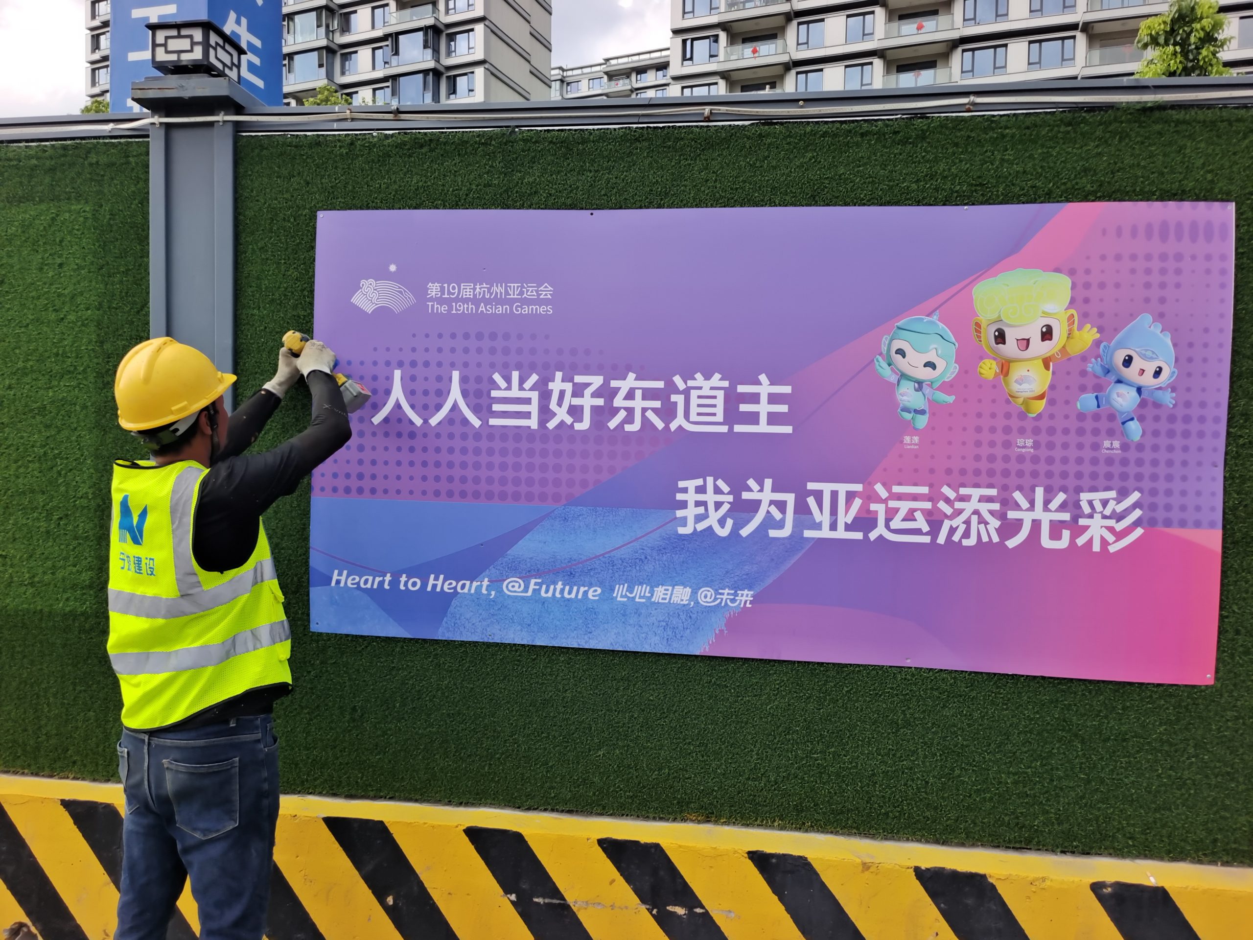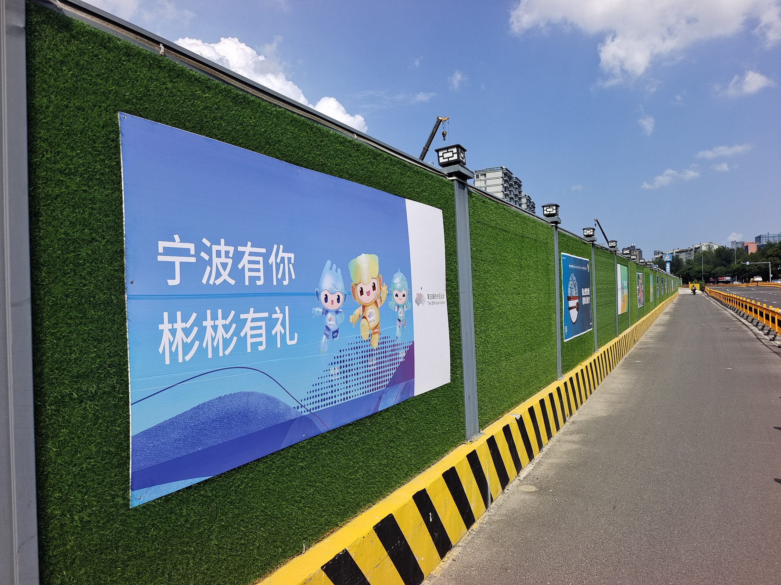 ? ? ? “在寧波,看見文明中國”、“辦好一個會、提升一座城”、“人人當好東道主、我為亞運添光彩”……隨著杭州亞運會的臨近,集團各在建工地圍擋均已換上了“亞運裝”,為亞運盛會的到來營造了濃厚的氛圍。