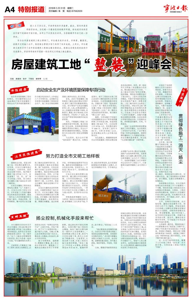 《寧波日?qǐng)?bào)》2016.05.31.A4版:房屋建筑工地“整裝”迎峰會(huì)