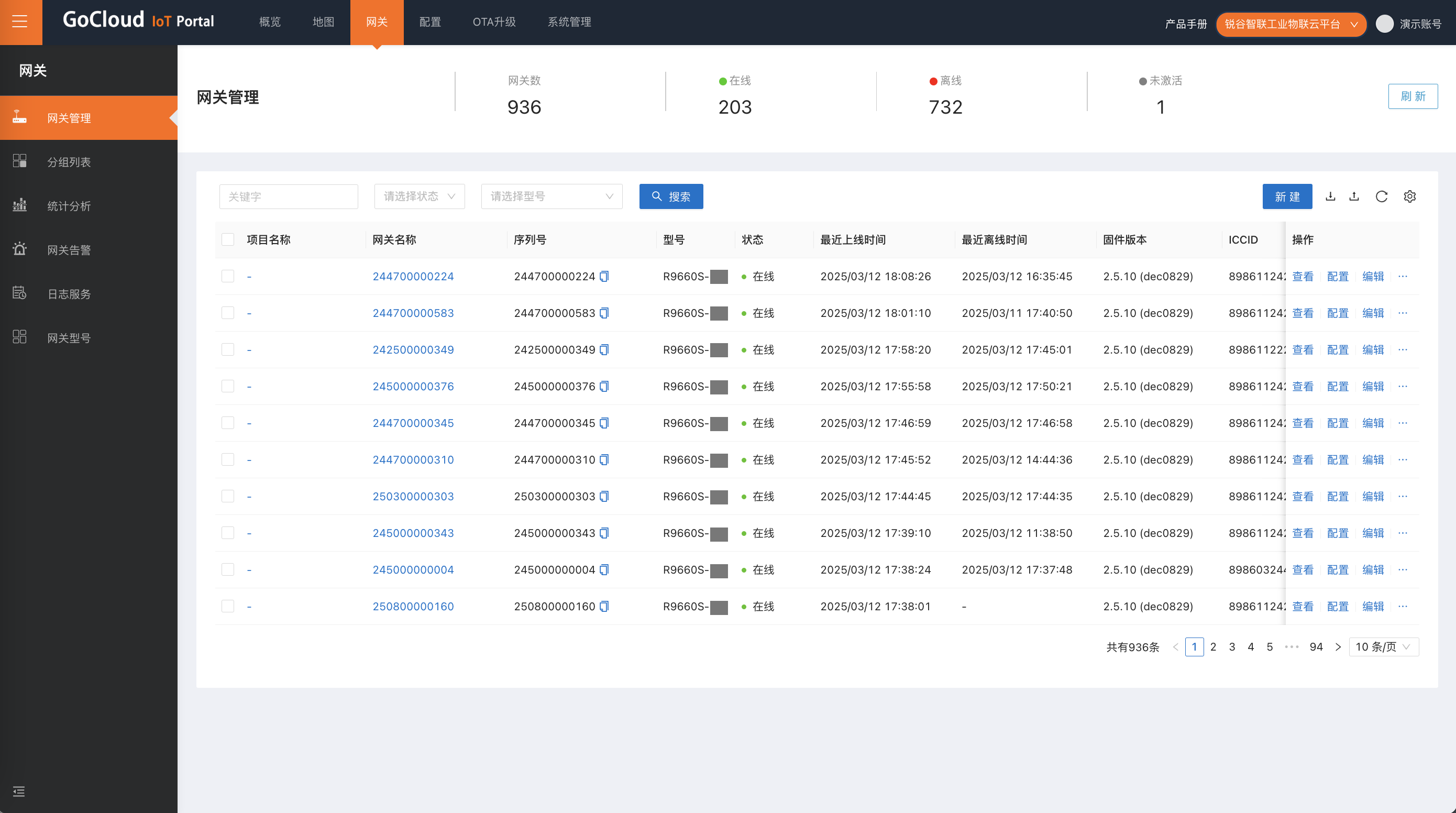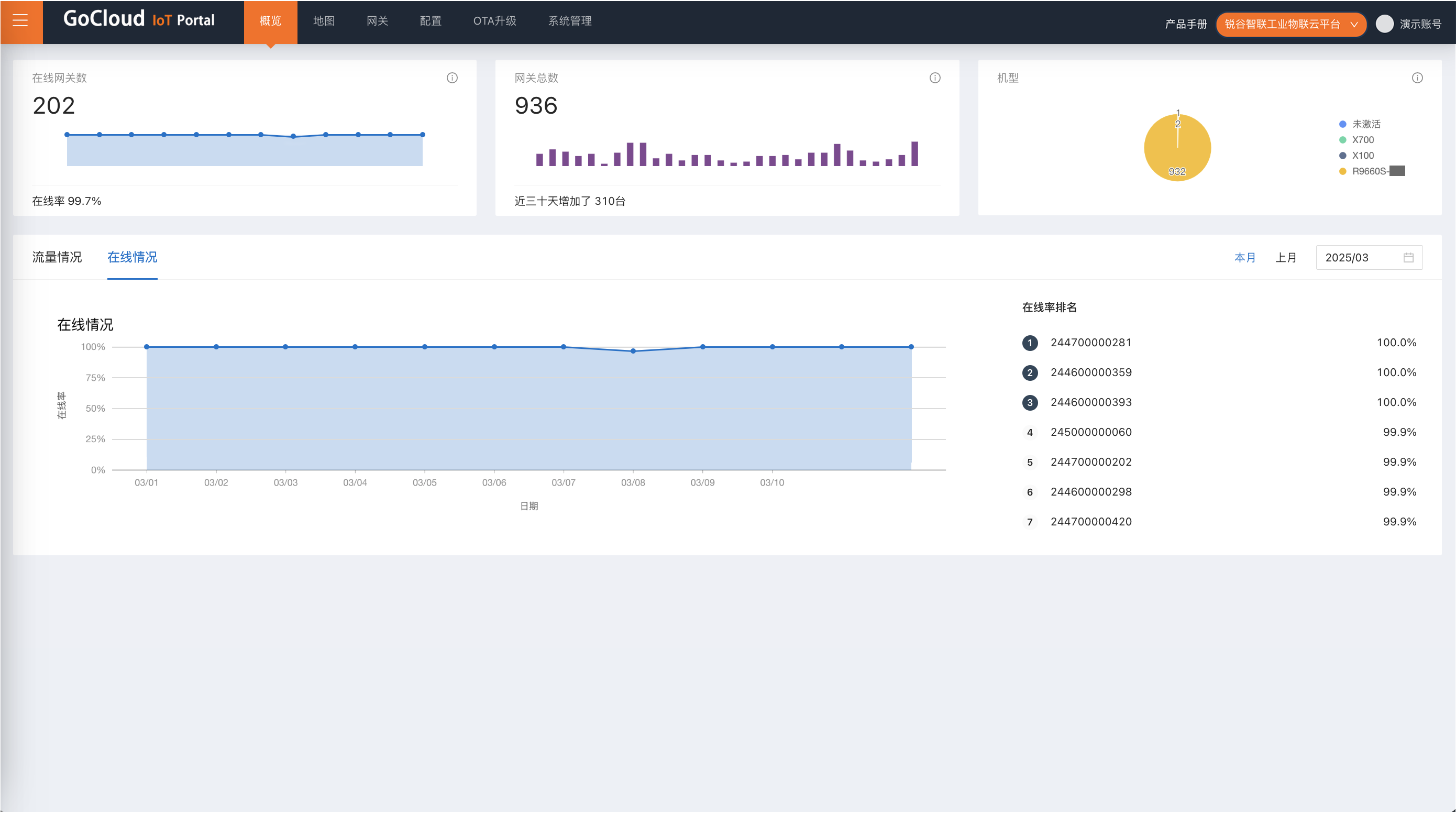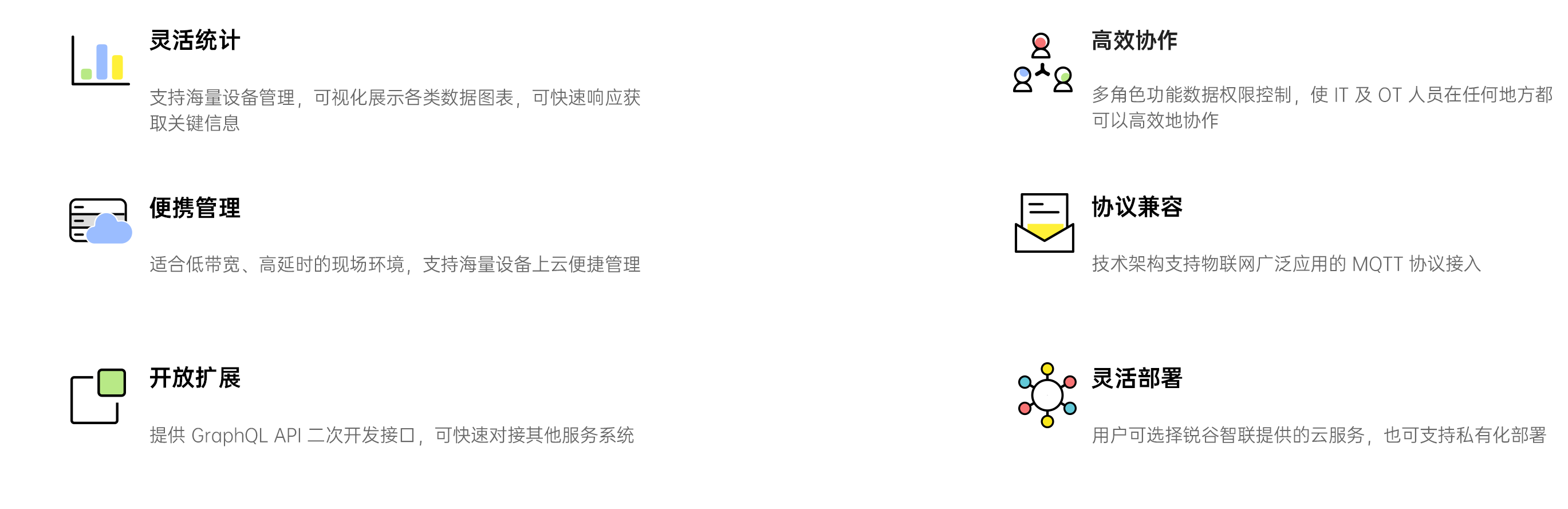 GoDevice 設(shè)備云平臺是由銳谷智聯(lián)自主研發(fā),集批量管理,設(shè)備監(jiān)控,遠(yuǎn)程升級等功能于一體的新一代集中式設(shè)備管理平臺,您可以在任何時間任何地點(diǎn)通過 GoDevice 設(shè)備云平臺管理成千上萬的銳谷智聯(lián)設(shè)備。通過可視化的用戶界面 和簡易的使用流程,使您可以方便的管理和監(jiān)視銳谷智聯(lián)的數(shù)傳終端、工業(yè)路由器及工業(yè)網(wǎng)關(guān)等硬件設(shè)備,實現(xiàn)設(shè)備快速集成、海量設(shè)備一鍵管理。私有化部署模式,保證用戶數(shù)據(jù)安全性;云端部署模式滿足用完即走的輕松體驗,讓您專注自己的核心業(yè)務(wù),為您的企業(yè)發(fā)展賦能。